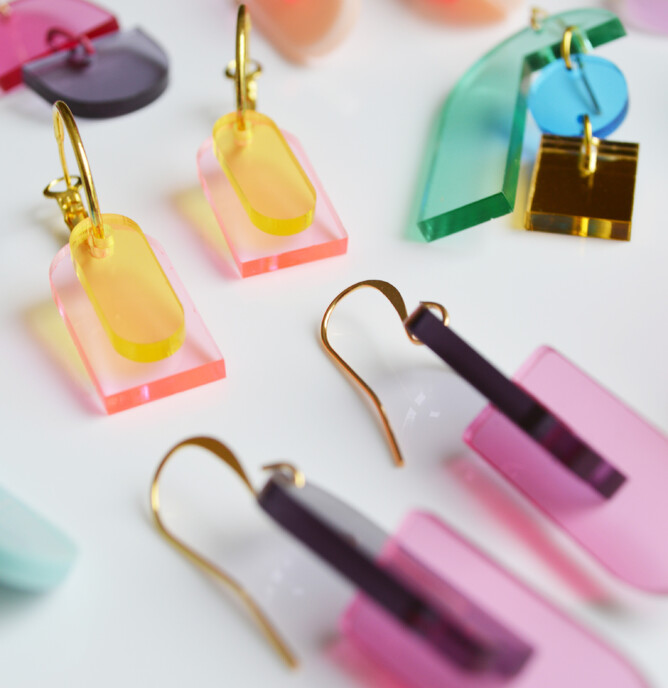 Inspired by hand blown glass - beautiful muted, transparent acrylic shades teamed with milky hues.