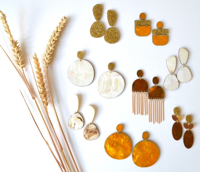 Our latest earring collection is a range of organic shaped designs in beautiful warm tones - beautiful statement earrings handmade here in New Zealand.