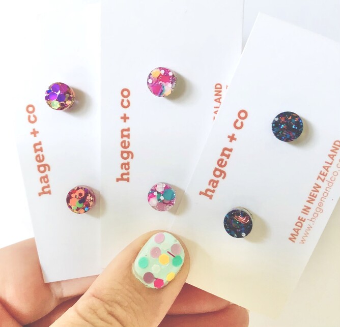 Glitter stud earrings for a pop of bling to your lobes! These are $25.