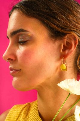 Sweet wee every day pair. You can mix it up by removing pieces - giving you three different styles....bang for ya buck! Blue mirror, marbled pale blue acrylic, with gold etching inspired by Palm fronds, summer and sunny days!