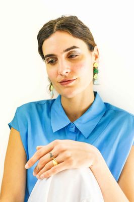 These are so delicate and sweet. Marbled mint green, leaf green and pale blue acrylic with an etched gold sun in three pretty tiers make these sunbeams divine!