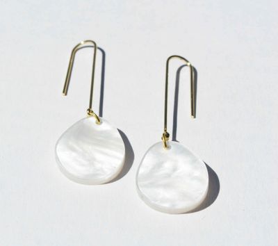 A simple organic shaped earring in pearl marbled acrylics
