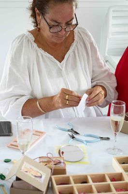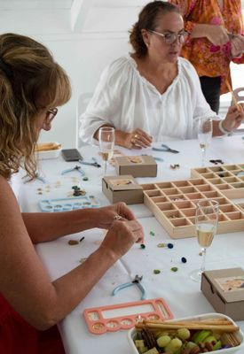 We are based on Waiheke Island (a 40 minute ferry ride from Auckland), and would love you to join us for a super fun earring-making workshop where you will create three pairs of beautiful earrings whilst taking in the stunning views from Waiheke Island Resort. Alternative venues are also an option, including in-home.